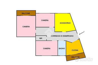 L'immobile, si presenta internamente allo stato originale ed è composto: nella zona giorno dall'ingresso da cui si accede ad un luminoso salone e dalla cucina abitabile che ha l'accesso al primo balcone vivibile della proprietà. Grazie ad un comodo corridoio entriamo nella zona notte, composta da tre ampie camere da letto di cui una con accesso al secondo balcone, un ripostiglio ed un bagno finestrato con vasca.