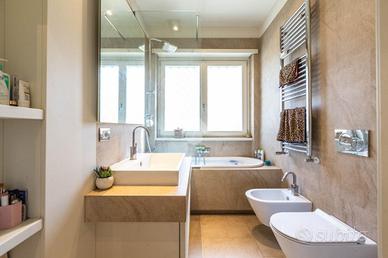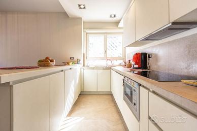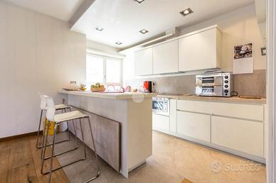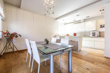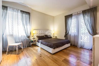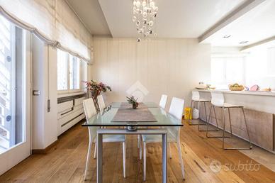-E.U.R. LAGHETTO - VIALE UMBERTO TUPINI Nel cuore del quartiere E.U.R., adiacente al Laghetto e precisamente in V.le Umberto Tupini proponiamo in vendita esclusiva un appartamento finemente ristrutturato. La soluzione si trova in un'elegante palazzina adiacente a tutti i servizi e attività commerciali di V.le Europa e V.le America, del laghetto dell'Eur e della fermata della metropolitana Eur Palasport. La ristrutturazione dell'immobile è stata pensata per sfruttare al meglio ogni spazio della casa e ha trasformato in chiave moderna e attuale quella che era la planimetria dell'epoca. L'appartamento è così composto: ampio ingresso, salone triplo con un terrazzo adiacente e cucina a vista dotata di ogni comfort ed elettrodomestici, tre camere da letto tutte matrimoniali e tutte dotate di porta finestra con accesso al balcone, doppi servizi finestrati di cui uno inserito nella camera patronale ed un secondo grande terrazzo vivibile e fruibile dalla zona notte. L'appartamento gode di una triplice esposizione, EST - SUD - OVEST, che lo rende luminoso durante tutto l'arco della giornata. Completano la proprietà una cantina, un box auto ed un posto auto condominiale. La posizione strategica dell'immobile, la vicinanza alla fermata metro, alle vie dello shopping e a tutti i principali servizi lo rendono appetibile per un uso sia residenziale che professionale.