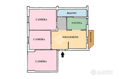 L'appartamento è così composto: ingresso, soggiorno cucina a vista, 3 camere da letto, bagno finestrato con box doccia e balcone accessibile dalla zona giorno.