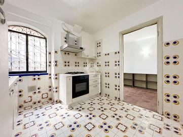Al primo livello sottostante ci accoglie un ampio salone di circa 50 mq, una cucina abitabile, un bagno, un disimpegno e un balconcino. Pur essendo indicato come seminterrato, grazie al dislivello del terreno l'affaccio posteriore è su Via Rocco Santoliquido, con un'esposizione pari a quella di un terzo piano, che dona luce e ariosità agli ambienti.