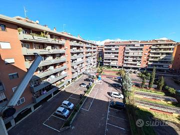 In un contesto residenziale tranquillo e ben servito, proponiamo in vendita un ampio quadrilocale al quinto piano, ideale per famiglie o per chi desidera ambienti spaziosi e funzionali. L'appartamento si compone di un luminoso doppio salone, cucina separata semiabitabile e due camere da letto. Dispone inoltre di doppi servizi finestrati, uno con doccia e l'altro con vasca, garantendo il massimo comfort. Completano la proprietà due balconi: uno di generose dimensioni con affaccio sul giardino condominiale e uno più piccolo, di servizio, con affaccio su strada. Sono inclusi nel prezzo una soffitta ampia e un posto auto in rimessa condominiale. La posizione è strategica e ben collegata, sia per chi si sposta in auto che con i mezzi pubblici, e offre la vicinanza a scuole, negozi e servizi di ogni tipo. Una soluzione ideale per chi cerca spazio, comfort e tranquillità in un contesto residenziale curato e completo di ogni comodità.