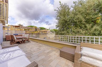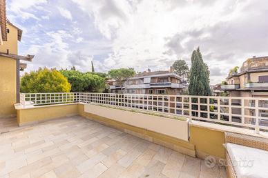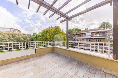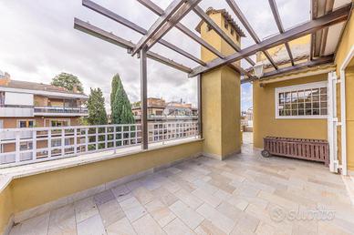 CORTINA D'AMPEZZO - In una delle zone più eleganti e tranquille di Roma Nord, precisamente su Viale Cortina d'Ampezzo, proponiamo in vendita un attico completamente ristrutturato, situato all'interno di una palazzina recentemente rinnovata grazie ai lavori di riqualificazione effettuati con Eco Bonus 110%. Lo stabile si presenta in condizioni impeccabili: sono stati realizzati interventi di efficientamento energetico come il cappotto termico, la nuova caldaia a condensazione, oltre all'installazione di infissi nuovi, che garantiscono un elevato comfort abitativo. L'appartamento si distingue per la sua luminosità e per gli spazi ampi e ben distribuiti. L'ingresso si apre su un salone doppio con camino che, insieme alla sala da pranzo, crea una zona giorno accogliente e perfetta. La cucina, separata e funzionale, è dotata di tutto lo spazio necessario per chi ama cucinare e vivere la casa. La zona notte è composta da tre camere da letto e due bagni, garantendo spazio alle famiglie numerose. Tutti gli ambienti si affacciano su una splendida terrazza perimetrale, ideale per godersi momenti di relax all'aperto e organizzare cene estive ammirando il panorama circostante. A completare la proprietà troviamo un comodo box auto di circa 32 mq e una cantina, perfetti per rispondere a ogni esigenza di spazio. L'attico rappresenta una soluzione ideale per chi desidera vivere in un contesto signorile, circondato dal verde e al tempo stesso vicino a tutti i principali servizi e collegamenti. Un'abitazione pronta da vivere, elegante e confortevole, nel cuore di una delle aree più ambite di Roma.