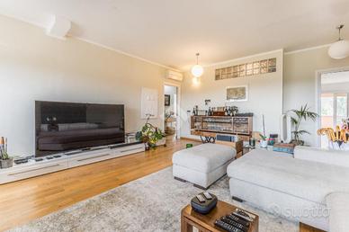 In un comprensorio signorile immerso nel verde, con parco privato e aree esterne curate, proponiamo un luminoso appartamento di 120 mq situato al quarto piano di una palazzina di cinque, caratterizzato da tripla esposizione e da una ristrutturazione completa effettuata nel 2014.