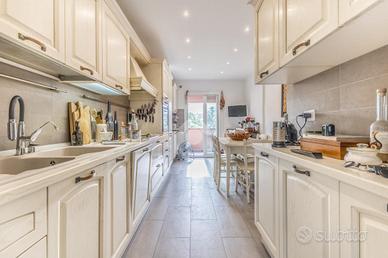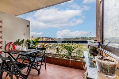 L'ingresso si apre su un ampio salone a vista, accogliente e molto luminoso, da cui si accede al terrazzo vivibile con affaccio panoramico sul Parco di Veio, perfetto per rilassarsi o pranzare all'aperto. La cucina è abitabile, comoda e ben organizzata, dotata di balcone.