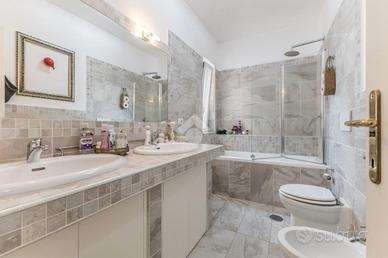 Il secondo bagno, anch'esso finestrato, è completo di vasca e mobile in muratura. A completamento di questo spazio troviamo una cabina armadio e una stanza attualmente utilizzata come lavanderia, ideale anche come studio per chi lavora in smart working.