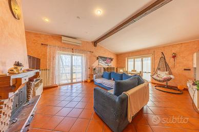 L'area living è composta da un grande soggiorno, perfetto per accogliere la famiglia e gli ospiti, con accesso diretto al balcone semi perimetrale che permette di godere della vista sul verde circostante.