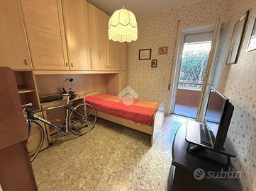 Via Filippo De' Grenet Adiacente ai principali servizi ma in una via residenziale proponiamo in vendita ampio appartamento con terrazza di c.a. 70 mq. Internamente composto da: ingresso, salone doppio, cucina abitabile, 3 camere, 2 bagni entrambi finestrati, 2 ripostigli e balcone. L'appartamento è dotato di infissi in doppio vetro PVC, sostituiti di recente, condizionatori e grate. La doppia esposizione angolare rendere l'immobile molto luminoso. Completano la proprietà due posti auto, uno coperto e uno scoperto, e una cantina.