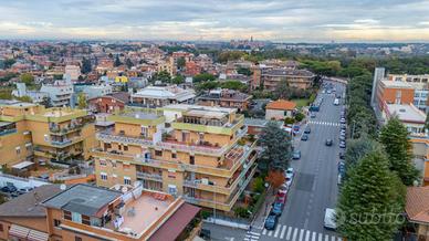 ATTICO E SUPER ATTICO CON VISTA PANORAMICA E BOX AUTO DI PERTINENZA In Via della Casetta Mattei, a pochi passi dalla zona Bravetta, proponiamo in vendita un esclusivo attico e super attico situato in un contesto signorile e ricercato, caratterizzato da tranquillità, comodità e immediata vicinanza ai principali servizi del quartiere. La posizione è particolarmente strategica: sotto casa sono presenti le fermate degli autobus con collegamenti diretti verso il Centro, Monteverde ed EUR, rendendo ogni spostamento pratico e veloce. L'abitazione si sviluppa al quarto e quinto piano e si distingue per un'ottima distribuzione degli ambienti e per la presenza di ampi spazi esterni, pensati per valorizzare al massimo la vivibilità quotidiana. Il piano principale, posto al quarto livello, accoglie gli ospiti con un ingresso che introduce nella luminosa zona giorno, un ambiente elegante composto da un salone di rappresentanza reso arioso dalle aperture verso l'esterno e ideale per chi ama ricevere o vivere quotidianamente spazi ampi e confortevoli. Su questo stesso livello troviamo un bagno di servizio, funzionale e ben posizionato, e una comoda cucina abitabile con accesso diretto al primo terrazzo, caratterizzato da una doppia esposizione angolare che conferisce luce naturale durante tutto l'arco della giornata. Il disimpegno notte, ben separato dalla zona giorno, conduce alla parte più privata dell'abitazione. Qui sono presenti un secondo bagno, una prima camera da letto matrimoniale e una seconda camera matrimoniale di dimensioni generose, quest'ultima dotata di accesso diretto a un ampio terrazzo, perfetto per momenti di relax all'aperto. Il livello superiore, collegato internamente tramite una scala elegante ma raggiungibile anche dal vano scale condominiale, rappresenta una vera e propria estensione della casa principale. Qui troviamo una terza camera da letto, versatile e riservata, e una splendida veranda attrezzata con area relax e una cucina in muratu