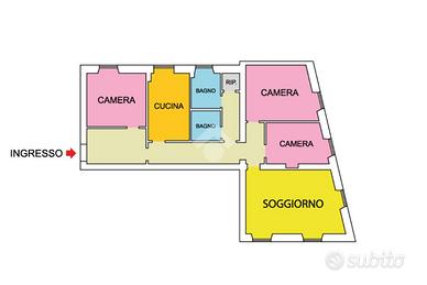 L'immobile, con una metratura commerciale di 136 mq circa, si compone di un soggiorno, tre camere da letto, cucina, due bagni e ripostiglio.
