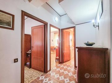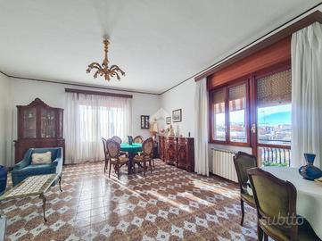 L'appartamento gode di generose metrature in tutti gli ambienti ed è composto da un ampio ingresso, salone doppio, cucina abitabile con tinello, disimpegno con armadio a muro e soppalchi, due camere matrimoniali, due bagni e tre balconi con tende da sole ed armadi in alluminio.