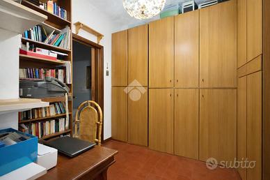 L'immobile si compone di ingresso sul soggiorno a vista, studio, disimpegno, cucina abitabile, tre camere, ripostiglio, due bagni di cui uno con finestra, balcone.