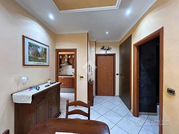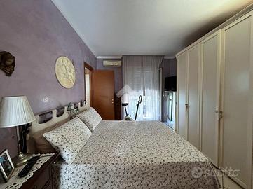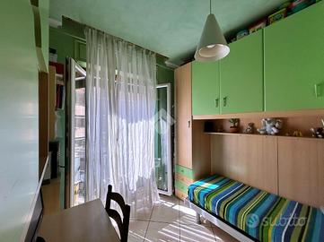 L'appartamento è composto da: un ampio ingresso, un soggiorno, una cucina abitabile, due camere da letto, una camera singola, due bagni e un balcone.