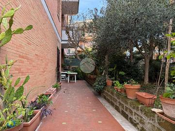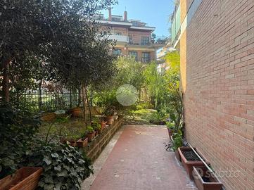 TALENTI - Nelle adiacenze della signorile Via Luigi Capuana e più precisamente in Via Dino Frescobaldi, in stabile in cortina recentemente ristrutturato, proponiamo la vendita di un quadrilocale dalla tripla esposizione. L'appartamento, ottimamente suddiviso in zona giorno e zona notte, è attualmente composto da ampio ingresso, salone doppio, disimpegno con cucina, sala da pranzo, corridoio con armadio a muro, due camere matrimoniali e bagno con finestra. La proprietà è circondata da un giardino, in parte terrazzato, di 220 mq c.a che rende la soluzione esclusiva. Completa la proprietà un box auto di 20 mq c.a raggiungibile con ascensore. L'immobile si presenta da ristrutturare e grazie all'ampia metratura è possibile ridistribuire gli spazi interni.