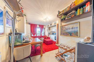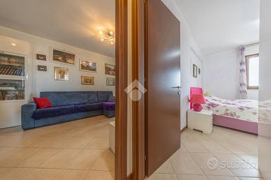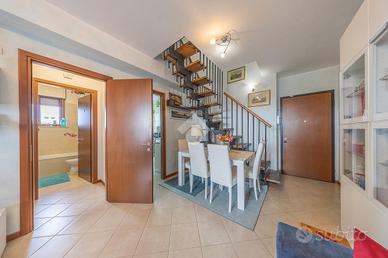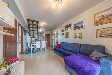 Varcata la porta blindata d'accesso, al piano centrale ci accoglie un luminoso soggiorno, dove tramite una porta finestra in doppio vetro e legno accediamo allo sfogo esterno, composto da un terrazzo;