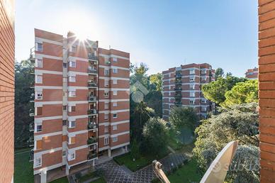 Eur Tintoretto. In viale del Tintoretto, all'interno di un condominio dotato di servizio di portineria ed ampi giardini, proponiamo in vendita un appartamento quadrilocale posto al 5° piano. L'immobile è composto da ingresso, salone, cucina, tre camere, due bagni, studio, lavanderia e due balconi. Completano la proprietà una cantina e due posti auto coperti.