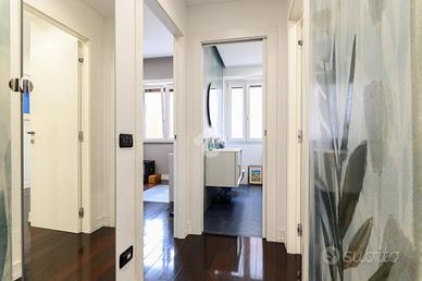 Via Carlo Denina, ubicato nella parte più esclusiva della zona dell'Appio Latino vicino a tutti i servizi principali, tra cui i trasporti e i servizi di prime necessità, limitrofo al Parco della Caffarella, e a Villa Lazzaroni proponiamo in vendita un appartamento Quadrilocale, una soluzione pronta per essere vissuta, chiavi in mano. Ubicato ad un piano medio, al secondo piano di uno stabile di quattro totali, con totale assenza di barriere architettoniche, ascensore di servizio, e finitura esterna dello stabile in cortina. L'esposizione tripla a Sud-Est, Sud-Ovest e Nord-Ovest donano all'immobile una splendida luminosità, grazie anche al piano medio e alla distanza dagli altri palazzi. L'immobile si presenta finemente ristrutturato con materie prime pregiate, che comprendono e combinano elementi di design ed elementi naturali. Tra questi troviamo: - Cucina su misura; - Parquet in legno Wengé; - Infissi in doppio vetro taglio termico, resistente alla corrosione; - Condizionamento in ogni ambiente; - Impianti certificati. Internamente l'appartamento si sviluppa su una pianta squadrata. La zona giorno è composta da un ampio ingresso luminoso con armadio a muro, salone di rappresentanza con parete interamente vetrata e coibentata che ci porta al primo spazio esterno abitabile, creando un effetto da 'giardino inglese' in casa propria, cucina ampiamente abitabile con accesso al secondo spazio esterno, zona lavanderia e primo servizio. La zona notte non da meno ci accoglie con tre camere da letto ampie, di cui una con cabina armadio walk-in e un suo spazio esterno privato. Completa la proprietà un ulteriore servizio posizionato strategicamente tra gli ambienti. Le informazioni riportate non costituiscono elemento contrattuale.