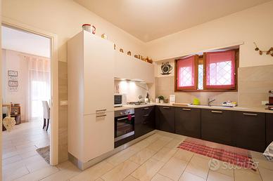 L'ingresso introduce a un ampio salone doppio, luminoso e accogliente, perfetto per momenti di relax e convivialità. La grande cucina abitabile, separata e funzionale, è ideale per chi ama vivere la casa e condividere pranzi e cene in famiglia.