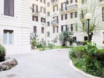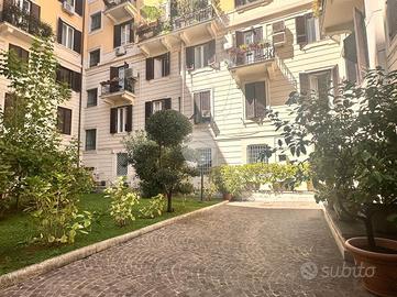 Nel cuore del prestigioso contesto di Piazza Verdi, proponiamo in vendita un elegante appartamento sito in uno splendido edificio storico del 1914 con servizio di portineria. Con una superficie di 105 mq, l'immobile, al piano terra, offre spazi ben distribuiti e funzionali ed è composto da ingresso, soggiorno, due camere da letto, cameretta, cucina abitabile e due bagni. La doppia esposizione, esterna su via Domenico Cimarosa e interna sul meraviglioso giardino condominiale, assicura una luminosità naturale a tutti gli ambienti. L'immobile è stato di recente ristrutturato e si presenta quindi in ottime condizioni interne. Pavimentazione in parquet.