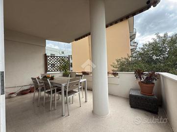 L'ingresso si apre su un ampio salone doppio, ideale per accogliere famiglia e ospiti in un'atmosfera raffinata e confortevole. Dal soggiorno si accede direttamente a un meraviglioso terrazzo vivibile, perfetto per momenti di relax all'aperto e per pranzi e cene conviviali grazie allo spazio dedicato a un grande tavolo da esterno.