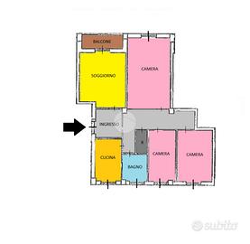 L'appartamento si compone di un ampio ingresso, soggiorno, tre camere da letto di cui due matrimoniali, cucina abitabile, bagno, ripostiglio e balcone.