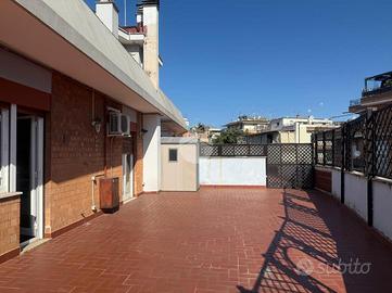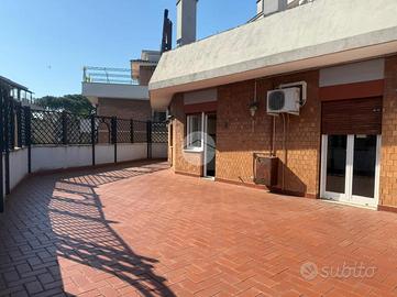 TALENTI - Via Carlo Dossi - In condominio in cortina in ottime condizioni, a pochi passi da tutti i servizi che la zona offre, proponiamo la vendita di un attico. L'appartamento è composto da ampio ingresso con ripostiglio, salone con camino, disimpegno con due armadi a muro, due camere matrimoniali, camera singola, cucina abitabile, doppi servizi, entrambi con finestra, uno con vasca ed uno con box doccia, e soppalco. L'immobile gode di un ampio terrazzo di 90 mq c.a, in parte perimetrale, a cui si accede da tutti gli ambienti della casa. La soluzione grazie ad una tripla esposizione risulta essere molto luminosa. Completa la proprietà un posto auto coperto.