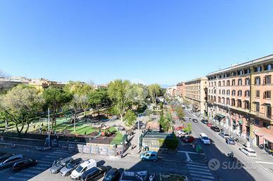 Nello storico quartiere di San Lorenzo, precisamente all'inizio della centrale via Tiburtina, disponiamo di un'ampia soluzione di 113 mq ca. Sito al 4° piano di 7 di uno stabile in buono stato dotato di ascensore, l'immobile è composto da: ingresso, cucinotto, luminoso soggiorno che gode di doppia esposizione, 3 comode camere da letto, doppi servizi. Esclusività della proprietà è il balcone con AFFACCIO APERTO PARONAMICO su piazza del Parco Caduti del 19 Luglio 1943. Grazie alla tripla esposizione gli ambienti risultano piacevolmente luminosi ed arieggiati. A pochi passi dai principali servizi offerti dal quartiere, in posizione strategica rispetto ai principali mezzi di trasporto pubblici quali la Stazione Termini e il capolinea di piazzale del Verano, e ben collegato a differenti sedi dell'Università La Sapienza di Roma e al Policlinico Umberto I. Le informazioni riportate non costituiscono elemento contrattuale.