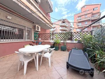 VIA VALLE SCRIVIA - AMPIO QUADRILOCALE CON TERRAZZO VIVIBILE E POSSIBILITÀ BOX AUTO Nel cuore del quartiere Montesacro, in Via Valle Scrivia, proponiamo in vendita un elegante quadrilocale di ampia metratura, situato all'interno di uno stabile signorile dotato di ascensore e curato negli spazi comuni. L'immobile, posto al primo piano con affacci da secondo, sviluppa una superficie di circa 115 mq e si distingue per l'ottima distribuzione degli ambienti e la luminosità. L'ingresso conduce a un comodo disimpegno che separa in modo funzionale gli spazi. La zona giorno è il vero punto di forza della casa: un salone ampio e luminoso, ideale per accogliere famiglia e ospiti, con accesso diretto a uno splendido terrazzo abitabile di circa 30 mq. Questo spazio esterno, perfettamente integrato con il soggiorno, rappresenta un prolungamento naturale della zona living, ideale per pranzi all'aperto, momenti di relax e convivialità. La cucina è abitabile e separata, anch'essa con accesso a un balcone di circa 10 mq. La zona notte, ben disimpegnata, comprende due camere matrimoniali, una cameretta e un bagno, con possibilità di realizzare un secondo servizio. L'appartamento si presenta in ottimo stato interno; parte degli infissi è stata sostituita con doppi vetri in PVC. Il riscaldamento è centralizzato con contabilizzatori di calore, garantendo una gestione efficiente dei consumi. Completa la proprietà la possibilità di acquisto di un box auto all'interno dello stabile, comodamente raggiungibile tramite ascensore. L'appartamento si trova in posizione centrale all'interno del quartiere Montesacro, a pochi passi da tutti i principali servizi (supermercati, scuole, farmacie, poste) e ottimamente collegato al centro città grazie alla vicinanza delle fermate metro Conca d'Oro e Jonio, entrambe facilmente raggiungibili a piedi. Tecnocasa - Seleziona giovani da avviare alla professione di agente immobiliare in zona Montesacro - Conca D'Oro, offrendo corsi di formazione, fi