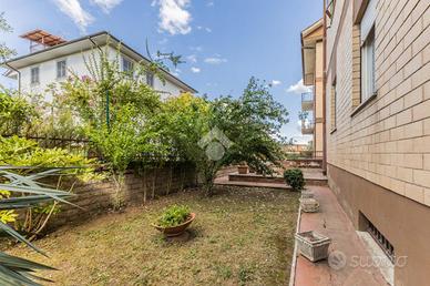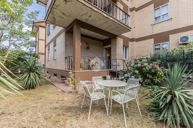 In una zona tranquilla e riservata, ma comoda per raggiungere il centro e i principali servizi, proponiamo in vendita un appartamento al piano terra con giardino privato e posto auto coperto.