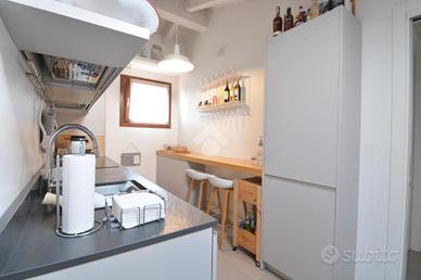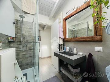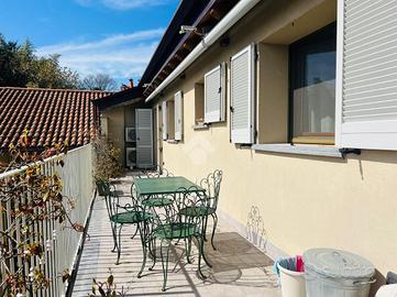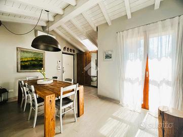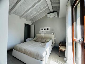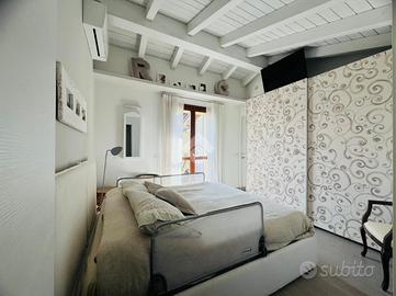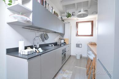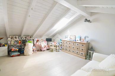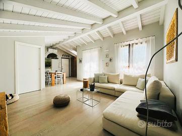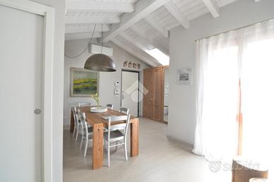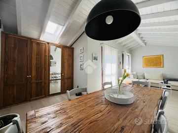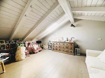 RONCO B.NO - Zona centrale. All'interno della prestigiosa Villa Nobili, elegante dimora storica completamente ristrutturata nel 2014, proponiamo in vendita appartamento situato all'ultimo piano, comodamente servito da ascensore e con un'ottima esposizione a Sud. L'ingresso si apre direttamente sull'ampia e luminosa zona living, valorizzata da soffitti alti con travi a vista bianche e raffinato pavimento in parquet. La zona giorno si affaccia su un gradevole terrazzino, ideale come spazio esterno per momenti di relax in compagnia. La cucina è separata e funzionale, mentre un primo bagno finestrato con doccia completa la zona giorno. La zona notte, ben distribuita tramite disimpegno, comprende una prima camera, una spaziosa camera matrimoniale con cabina armadio e accesso diretto al terrazzo, oltre a un secondo bagno con doccia e velux elettrico. Completa il piano, un locale accessorio agibile (non abitabile), versatile e perfetto come studio, terza camera o area hobby. L'immobile è dotato di finiture e comfort di alto livello: riscaldamento a pavimento, aria condizionata, impianto di allarme, ventilazione meccanica controllata, zanzariere e tende da sole esterne. Cantina e possibilità di acquistare un box auto ad €30.000.