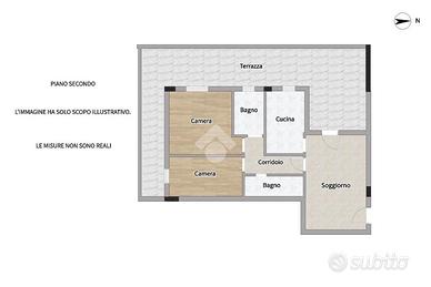 L'appartamento si trova al secondo piano, con esposizione sud-ovest, e offre una splendida luminosità naturale.