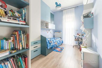 La zona notte comprende tre camere, tutte con accesso a un ampio balcone. La camera padronale è dotata di bagno privato, mentre il bagno principale è completo di vasca e box doccia.