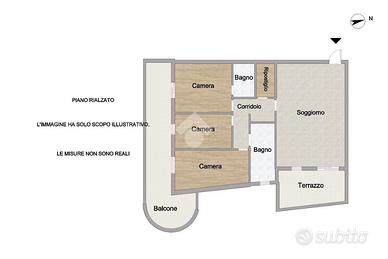Appartamento ristrutturato con tre camere e due bagni.