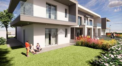 All'interno di un nuovo e moderno complesso residenziale di sole sei unità abitative, proponiamo in esclusiva due appartamenti quadrilocali situati al primo piano, entrambi dotati di ampia terrazza vivibile. La zona giorno si apre su un luminoso soggiorno con cucina a vista, con accesso diretto alla grande loggia coperta, ideale per pranzi e momenti di relax all'aperto. La zona notte comprende tre camere da letto -- una matrimoniale e due singole, tutte con affaccio sul balcone -- oltre a un bagno finestrato che serve l'intero appartamento. Completano la proprietà, al piano interrato, una cantina/lavanderia privata e una comoda autorimessa doppia. Gli appartamenti sono curati in ogni dettaglio e offrono la possibilità di personalizzare le finiture interne secondo il proprio gusto e stile abitativo. Sono dotati di riscaldamento a pavimento e di impianto fotovoltaico per una maggiore efficienza energetica e un comfort abitativo costante durante tutto l'anno. Le soluzioni proposte rientrano in Classe Energetica A4, garanzia di massimo risparmio energetico e attenzione all'ambiente. Contattaci oggi per fissare un appuntamento o ricevere il capitolato delle finiture!