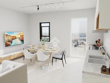 - la zona giorno è composta da soggiorno e cucina open space che affacciano su un'ampio terrazzo, ideale per momenti di relax all'aperto.