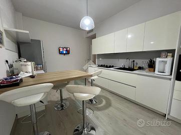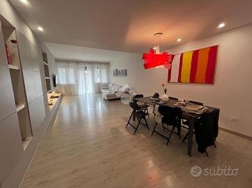 La grande zona giorno si divide tra salotto e cucina in due zone ben distinte, ognuno di questi con un suo terrazzo abitabile, di cui uno verandato e adibito a lavanderia, mentre l'altro ideale per momenti di relax all'aperto.