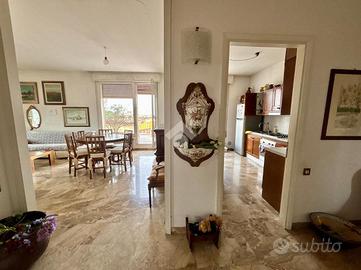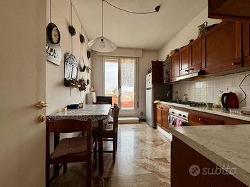 Accanto al soggiorno si trova la cucina abitabile separata, anch'essa dotata di porta finestra con accesso diretto al grande terrazzo: una caratteristica che la rende particolarmente pratica e comoda, soprattutto durante la bella stagione.