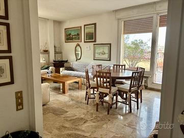La zona giorno è composta da un soggiorno particolarmente ampio e luminoso, impreziosito da grandi aperture vetrate. Una porta finestra conduce al meraviglioso terrazzo abitabile, un vero e proprio spazio all'aperto da vivere ogni giorno, ideale per pranzi, cene, momenti di relax o semplicemente per godere della vista unica che spazia sui tetti e sui monumenti della città. Sempre dal soggiorno, un'ulteriore porta finestra permette l'accesso a un balcone posto sul lato opposto dell'abitazione, garantendo così luce naturale durante tutto l'arco della giornata.