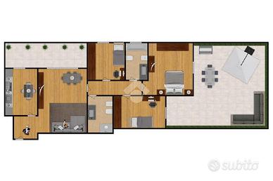 Nel cuore di Quinto Stampi, in palazzina di recente costruzione, proponiamo imperdibile 4 locali nel complesso i "VIGNETI". L'immobile si estende su una superficie di 103 mq, offrendo spazi ben distribuiti e funzionali. La disposizione interna prevede un ampio soggiorno, una cucina abitabile, una camera matrimoniale e due camerette, due bagni di cui uno con la doccia e uno con la vasca. La particolarità dell'immobile è un ampio terrazzo di circa 50mq ideale per gli amanti del verde o per trascorrere momenti di relax con gli amici. Inoltre, lo stabile si distingue per le sue basse spese condominiali, rendendo questo appartamento non solo una scelta di stile, ma anche un investimento conveniente. Non esitare a contattarci per ulteriori dettagli o per organizzare una visita. La posizione strategica permette di usufruire di tutti i negozi di Piazza Fontana tra cui farmacia, banche, negozi alimentari, posta e da scuole materne e medie e dal Centro Commerciale Fiordaliso. A pochi passi si trova la fermata del Tram 15 che con poche fermate porta direttamente a Milano e alla linea della metro verde di Piazzale Abbiategrasso. SEI INTERESSATO A QUESTO IMMOBILE E NON HAI ANCORA VENDUTO CASA TUA? CHIAMACI TI GUIDEREMO NELLA GESTIONE DELLA PERMUTA! Le planimetrie sono puramente indicative e non rappresentano elemento contrattuale.