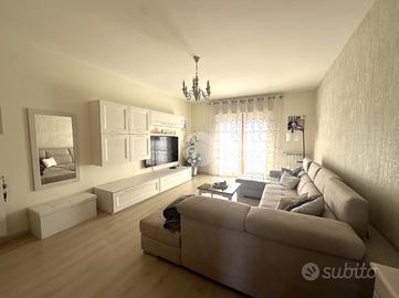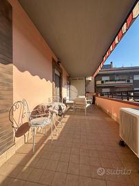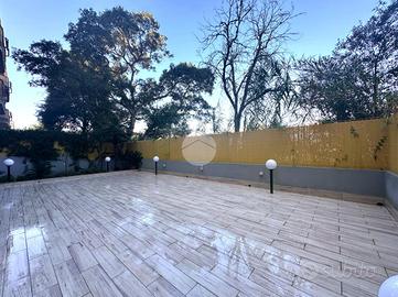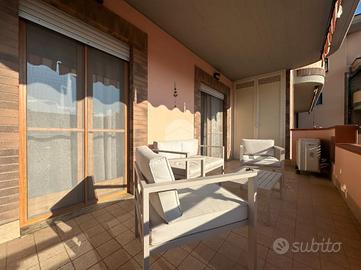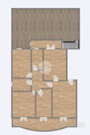 L'ingresso si apre sul salone con porta finestra che conduce sul terrazzo abitabile di 22 mq, perfetto per momenti di relax all'aperto. Questo terrazzo presenta inoltre due pratici armadi a muro, di cui uno utilizzato come lavanderia.