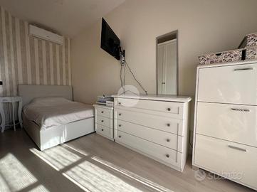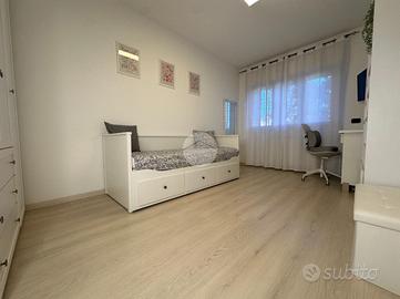 La zona notte si compone di tre camere da letto ben proporzionate, di cui una matrimoniale con accesso sul terrazzo. L'immobile dispone inoltre di due bagni, ambedue finestrati e completi di doccia.