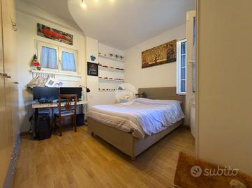 Internamente l'appartamento si apre su un ampio salone, separato dalla cucina abitabile. Entrambi gli ambienti hanno accesso diretto alla terrazza principale, affacciata su strada, perfetta per pranzi all'aperto, momenti di relax o per vivere uno spazio esterno vivibile tutto l'anno.