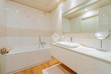 Un elegante disimpegno introduce la zona notte, composta da tre camere da letto. Le due camere singole dispongono di un bagno di servizio con doccia e di un balcone collegato a una delle stanze, mentre la camera matrimoniale, ampia e