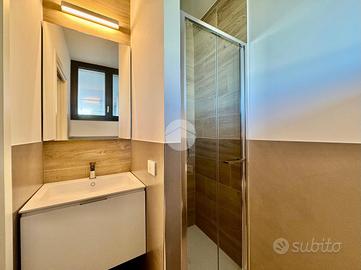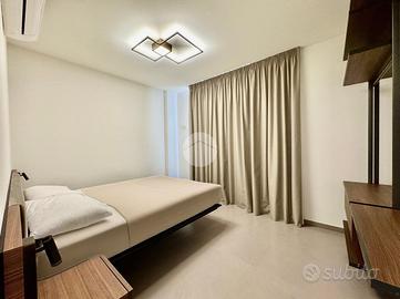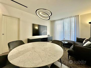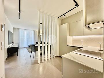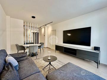 L'appartamento offre inoltre riscaldamento a pavimento e condizionamento ad aria in ogni stanza, garantendo comfort tutto l'anno, e un posto auto riservato.