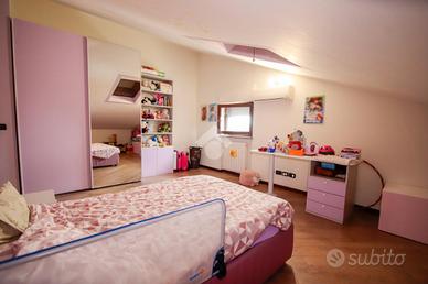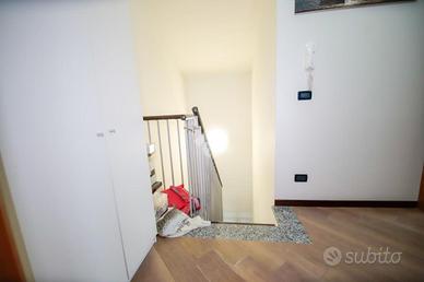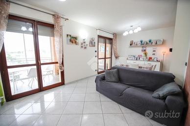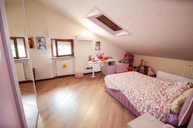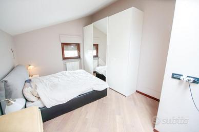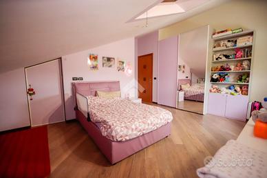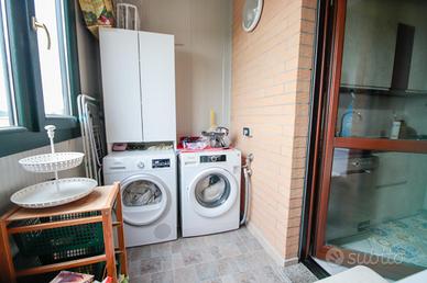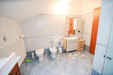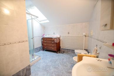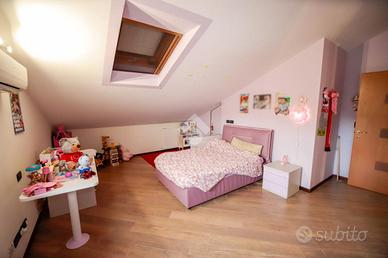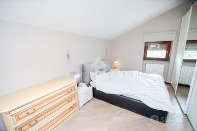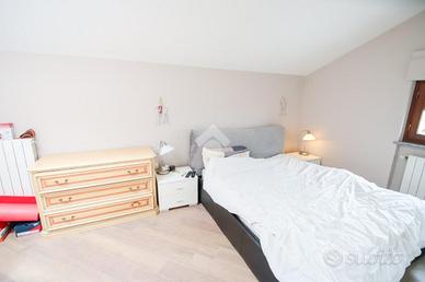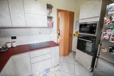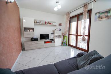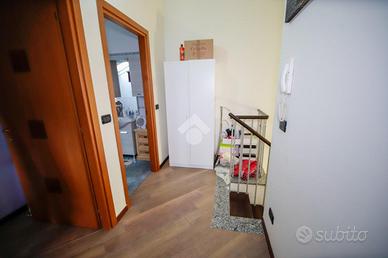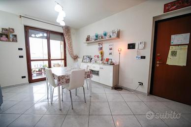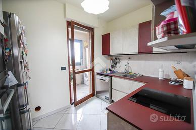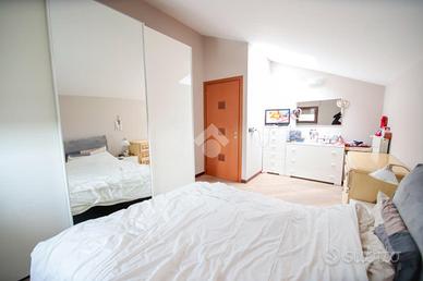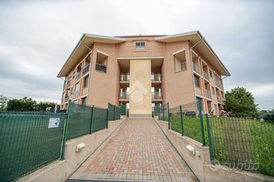 Nel comune di San Benigno Canavese, appartamento situato all'ultimo piano di un complesso residenziale dotato di ascensore. L'immobile è di costruzione del 2005 disposto su due livelli. L'ingresso è sulla zona giorno, composta da cucinotta con balcone e ampio soggiorno con accesso al terrazzo coperto, reso luminoso grazie alle vetrate con zanzariere, recentemente installate. Il bagno è con doccia e finestra. Al piano superiore si sviluppa la zona notte, composta da due locali adibiti a camere da letto e un locale lavanderia dotato di velux. Gli infissi sono con il doppio vetro, accessoriati di zanzariere, è presente il videocitofono e i climatizzatori. Di proprietà il box auto doppio ed il posto auto.
