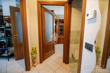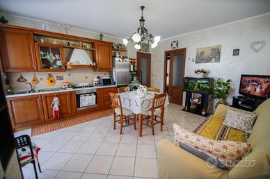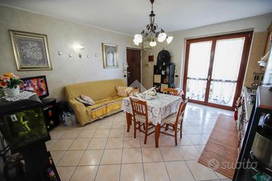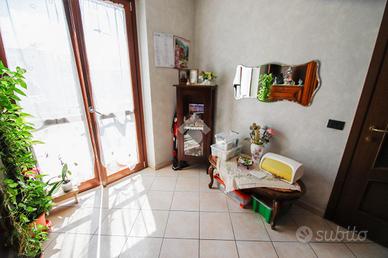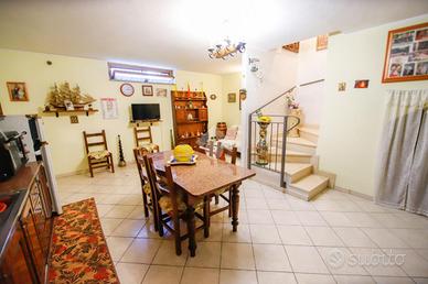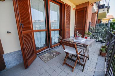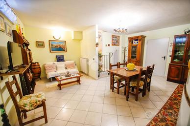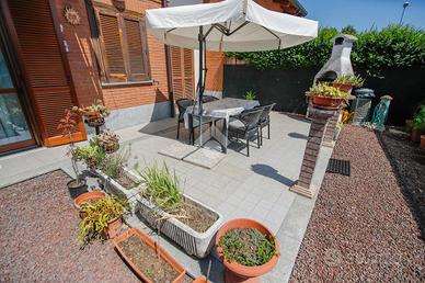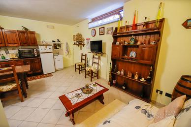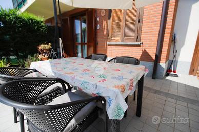 In curato contesto di sole quattro unità abitative, appartamento di costruzione del 2010 con doppia esposizione e giardino privato. L'ingresso è su luminosa cucina abitabile con accesso diretto al giardino. Il disimpegno divide il bagno, accessoriato di doccia e finestra, la camera matrimoniale con pavimetazione in parquet e la cameretta. Dalla scala interna in muratura si giunge al piano inferiore che dispone di locale rifinito ad uso tavernetta. Nella parte antistante è presente un ampio cortile privato. Gli infissi sono in doppio vetro in legno con zanzariere, sono presenti i pannelli solari, l'antifurto, il videocitofono ed il riscaldamento è semi - autonomo a pavimento. Box auto doppio. Questa soluzione abitativa rappresenta un'opportunità interessante per chi cerca un'abitazione confortevole in una zona tranquilla e ben servita.
