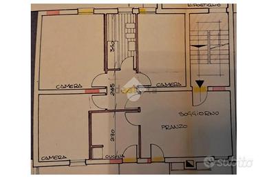 Pavimentazione in piastrelle in tutta l'abitazione fatta eccezione della camera matrimoniale dove c'è il parquet ed in bagno dove è in gress