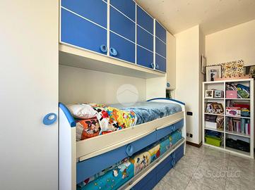 COSA SAPERE SULLA CASA Soggiorno - Cucina - Due camere da letto - Bagno - Ripostiglio - Balconi - Garage - Cantina PARTICOLARITA' E DESCRIZIONE Situato in un tranquillo contesto condominiale del 1993, proponiamo in vendita a San Bonifacio un appartamento posto al quarto ed ultimo piano, comodamente servito da ascensore. L'immobile si distingue per un'ottimale distribuzione degli spazi interni, che garantisce privacy e comfort in ogni ambiente. La zona giorno ci accoglie in un ampio soggiorno, separato da una cucina abitabile; entrambi i vani vantano l'accesso diretto a un balcone esterno. Un disimpegno centrale conduce alla zona notte, dove troviamo una spaziosa camera matrimoniale, una camera singola e un bagno finestrato servito da vasca. La praticità della casa è arricchita da un ripostiglio interno, perfetto per l'organizzazione quotidiana. L'abitazione ha beneficiato della sostituzione della caldaia e l'installazione di nuovi condizionatori circa sei anni fa, garantendo un'efficienza impiantistica già aggiornata. La proprietà è completata da una cantina e da un garage singolo al piano interrato. CONTESTO ED UBICAZIONE Ricordiamo che il comune di San Bonifacio dispone di tutti i servizi di cui un cittadino necessita, come supermercati, farmacie e banche. Inoltre è situato in posizione strategica tra Verona e Vicenza.