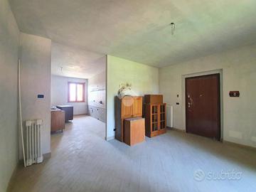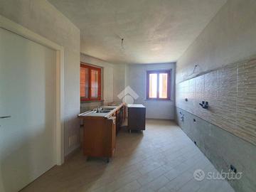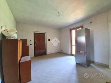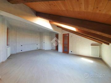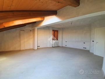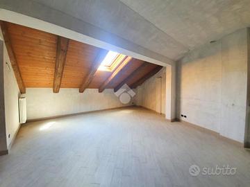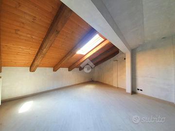L'accesso avviene tramite il portoncino blindato che conduce alla zona giorno composta dal soggiorno living e dalla cucina abitabile. La zona notte è composta dalla camera da letto matrimoniale di 32 mq con caratteristica travatura in legno a vista. Dal soggiorno e dalla camera, vi è l'uscita diretta sul balcone. L'antibagno è dotato di attacco per la lavatrice mentre il bagno ha sia la doccia che la vasca.