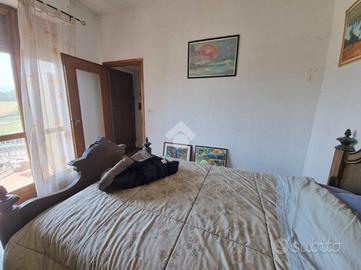 L'ingresso, tramite il portoncino, è sul disimpegno che conduce al bagno con vasca. La cucina è abitabile. Sempre al piano, si trovano le due camere da letto e il vano ripostiglio.