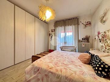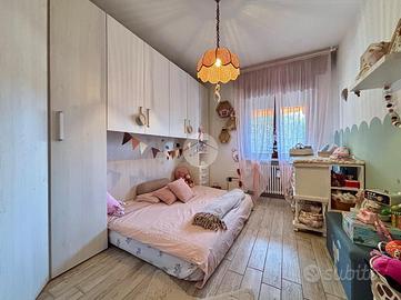 La zona notte è ben separata e si compone di 3 camere da letto: una spaziosa matrimoniale, una seconda doppia di generose dimensioni e una terza singola comunque ampia e ben sfruttabile. Completa il reparto notte un bagno finestrato con doccia, anch'esso rifinito con sanitari sospesi.